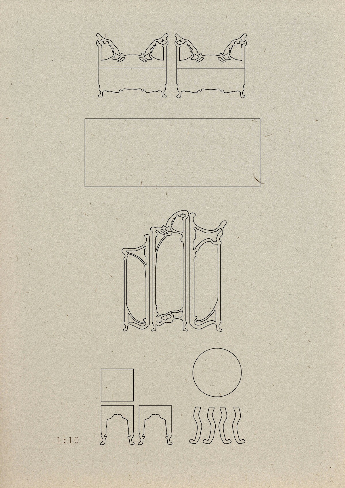 Alongside the physical model, Natalie crafted personal documents, sketches, and ephemera belonging to Leontine Fluermont, building a layered backstory that deepened the fictional artist’s presence within the space. This narrative dimension allowed the model to function not only as a representation of architecture but as an artifact of a lived‑in world, embodying the project’s ethos of beauty, craft, and storytelling.